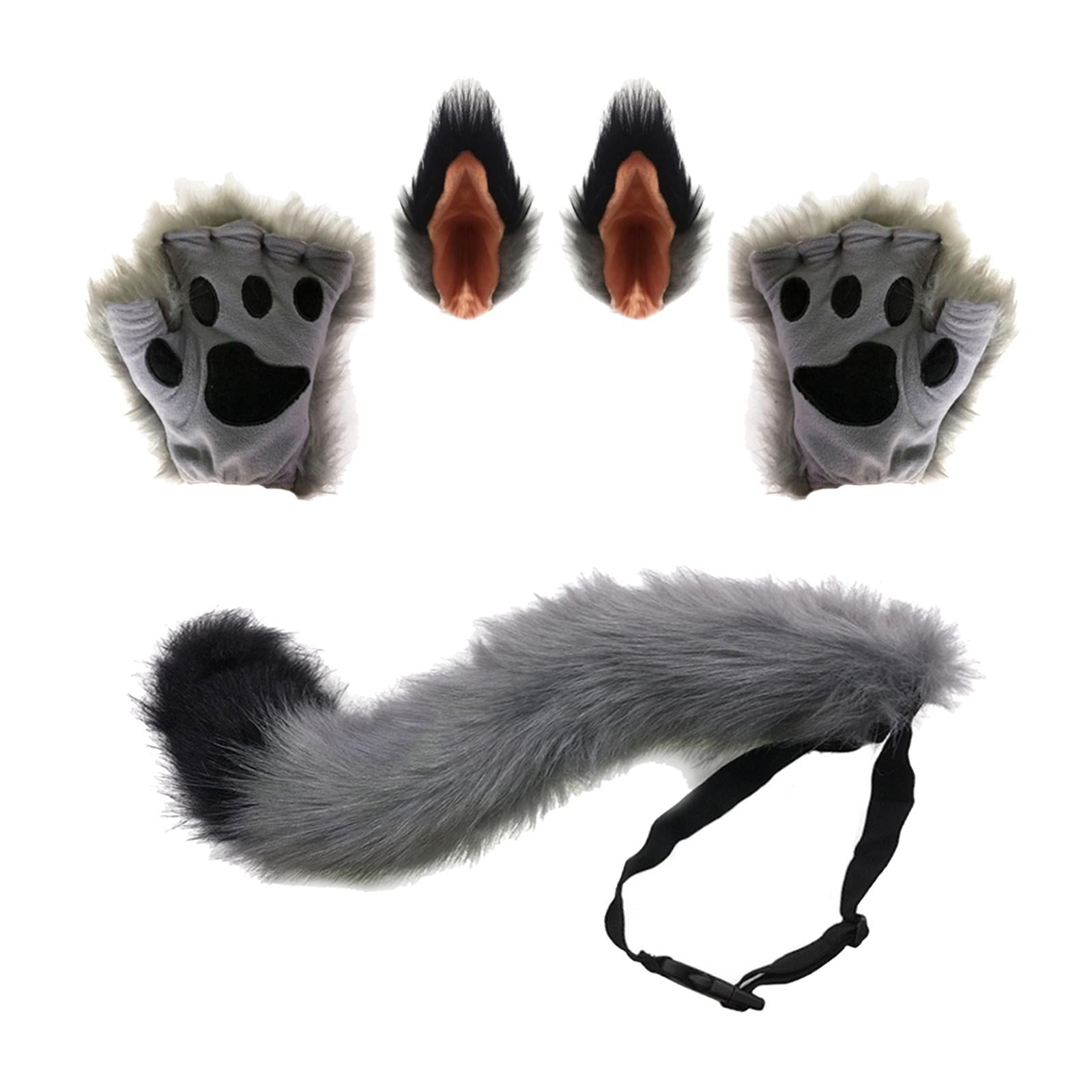 Ears Hair Clip Furry Long Tail Costume Party Cosplay Gray Black Walmart Com