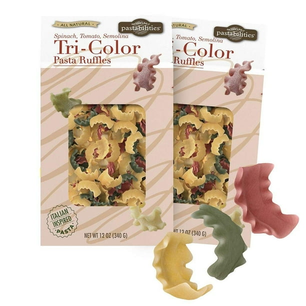 Pastabilities Tri Color Pasta Ruffles Spinach Tomato And Plain Flavored Shaped Noodles Non Gmo Wheat Pasta 12 Oz 2 Pack Walmart Com