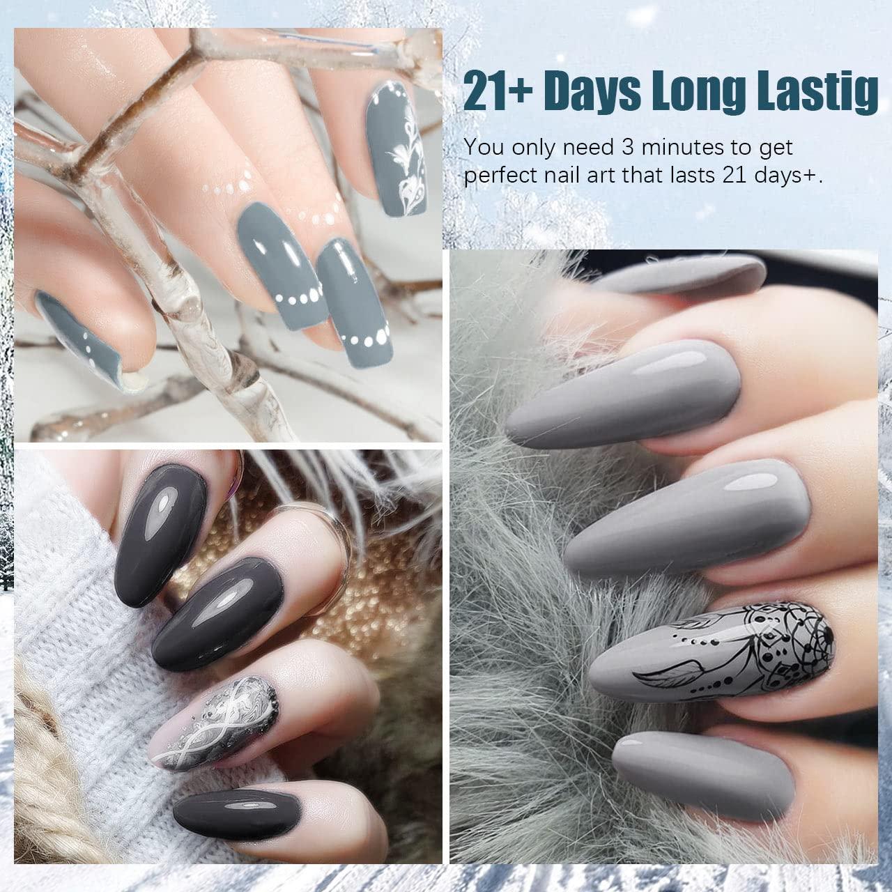 Gel Nail Polish Kit Kastiny 9pcs Elegant Grey Soak Off Gel Nail Collection With Base Glossy Matte Gel Top Coat Set Diy Manicure Kit For New Year Valentine Day Gift